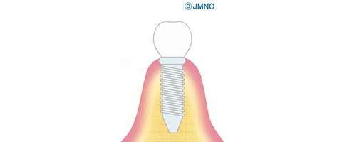 インプラントは人工物であるため、むし歯にはなりません。しかし、歯周病原細菌がもたらす炎症に対しては脆弱です。厳密には、インプラントを囲んでいる粘膜に、天然歯の同じような歯周組織がないため骨の吸収が起きやすいのです。